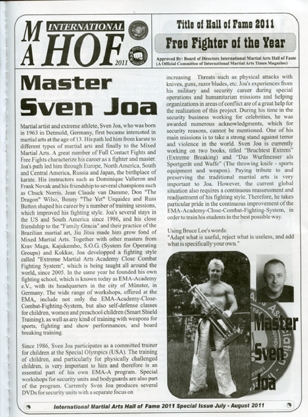 Sven Joa in der MMA Zeitschrift zur Ehrung in der Hall of Fame